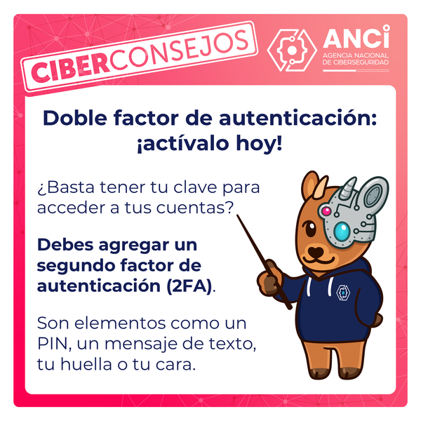 Por eso, los Ciberconsejos de la ANCI esta semana nos recuerdan que debemos activar el segundo factor de autenticación (2FA) en todas nuestras cuentas, además de mostrarnos los mecanismos más usados como 2FA.