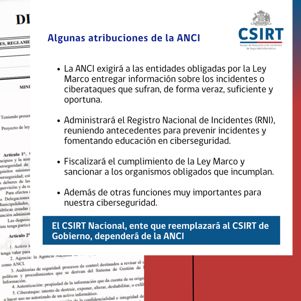 Entre sus medidas se crea la Agencia Nacional de Ciberseguridad, que tendrá numerosas atribuciones para coordinar, supervisar, regular y sancionar a instituciones públicas y privadas, para cumplir con nuevas obligaciones de toma de medidas de seguridad y reporte de incidentes.