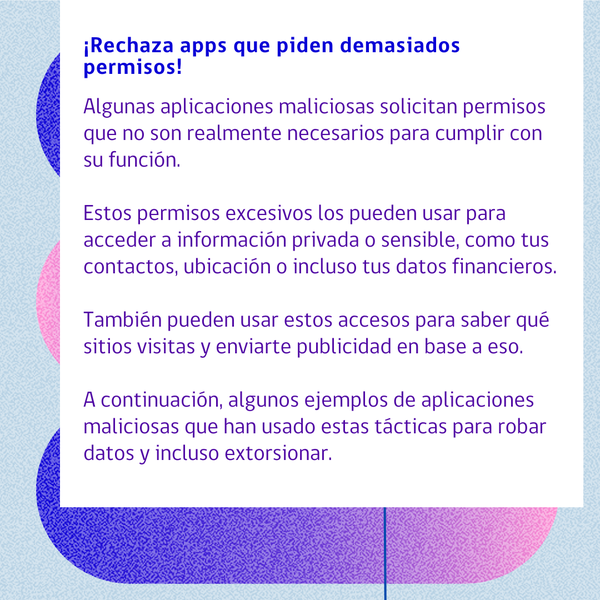En esta ocasión, les recalcamos la importancia de fijarnos en qué permisos nos piden las apps al momento de instalarlas, ya que muchas veces solicitan permisos indebidos, algo que resulta particularmente peligroso cuando se trata de apps de préstamos ilegales.