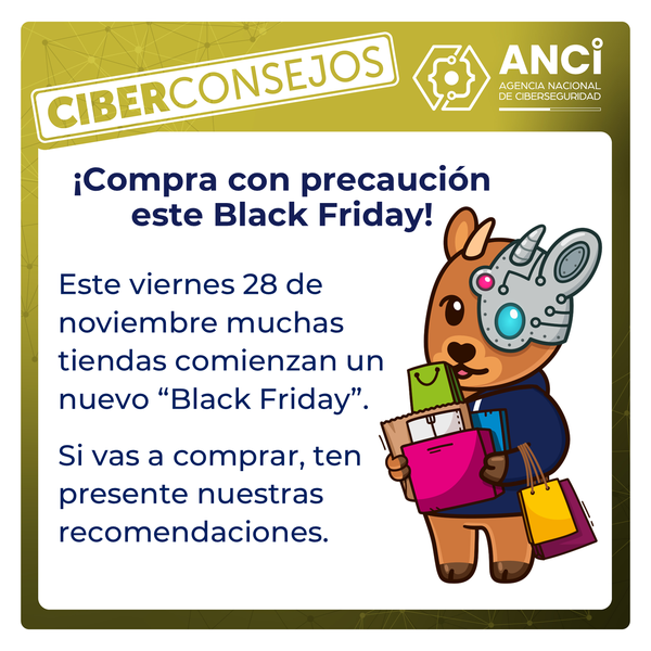 Este viernes 28 de noviembre llega un nuevo evento de rebajas cibernéticas y como siempre, en la Agencia Nacional de Ciberseguridad (ANCI) queremos recordarte algunos Ciberconsejos fundamentales para estar más seguro si decides comprar en internet.