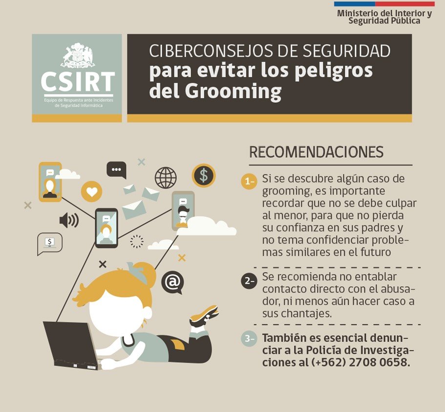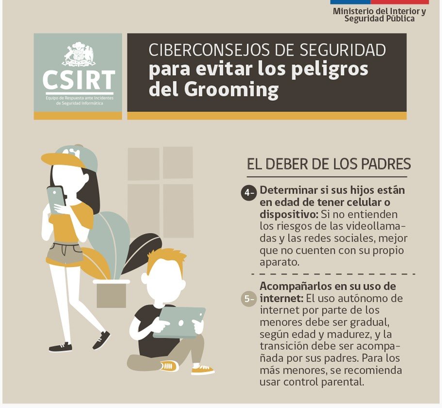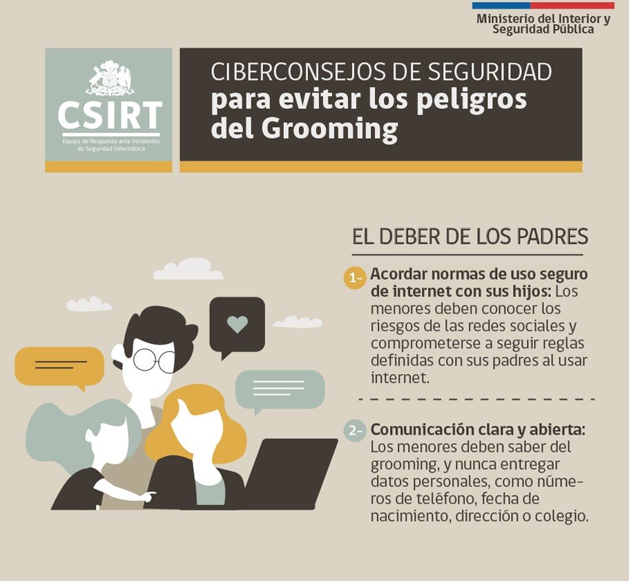 Es clave que tus hijos conozcan este riesgo al meterse a internet. Y para ayudarte a conversar del grooming con ellos, elaboramos los siguientes Ciberconsejos.