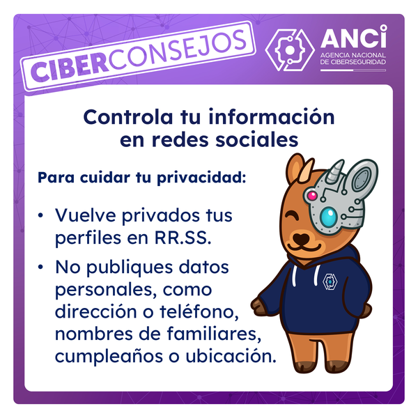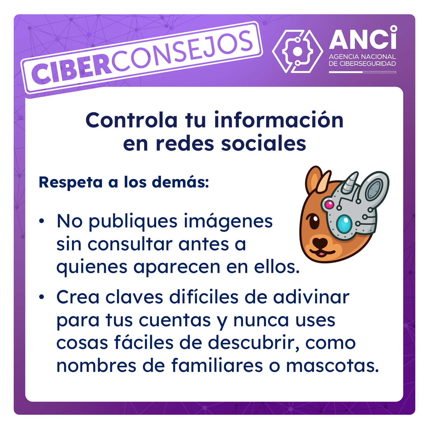 Porque debemos tener cuidado con lo que publicamos en las redes sociales, hoy en Ciberconsejos te dejamos algunas recomendaciones condensadas de la Guía para prevenir riesgos en redes sociales, para que evites compartir demasiada información personal y crees contraseñas seguras.
