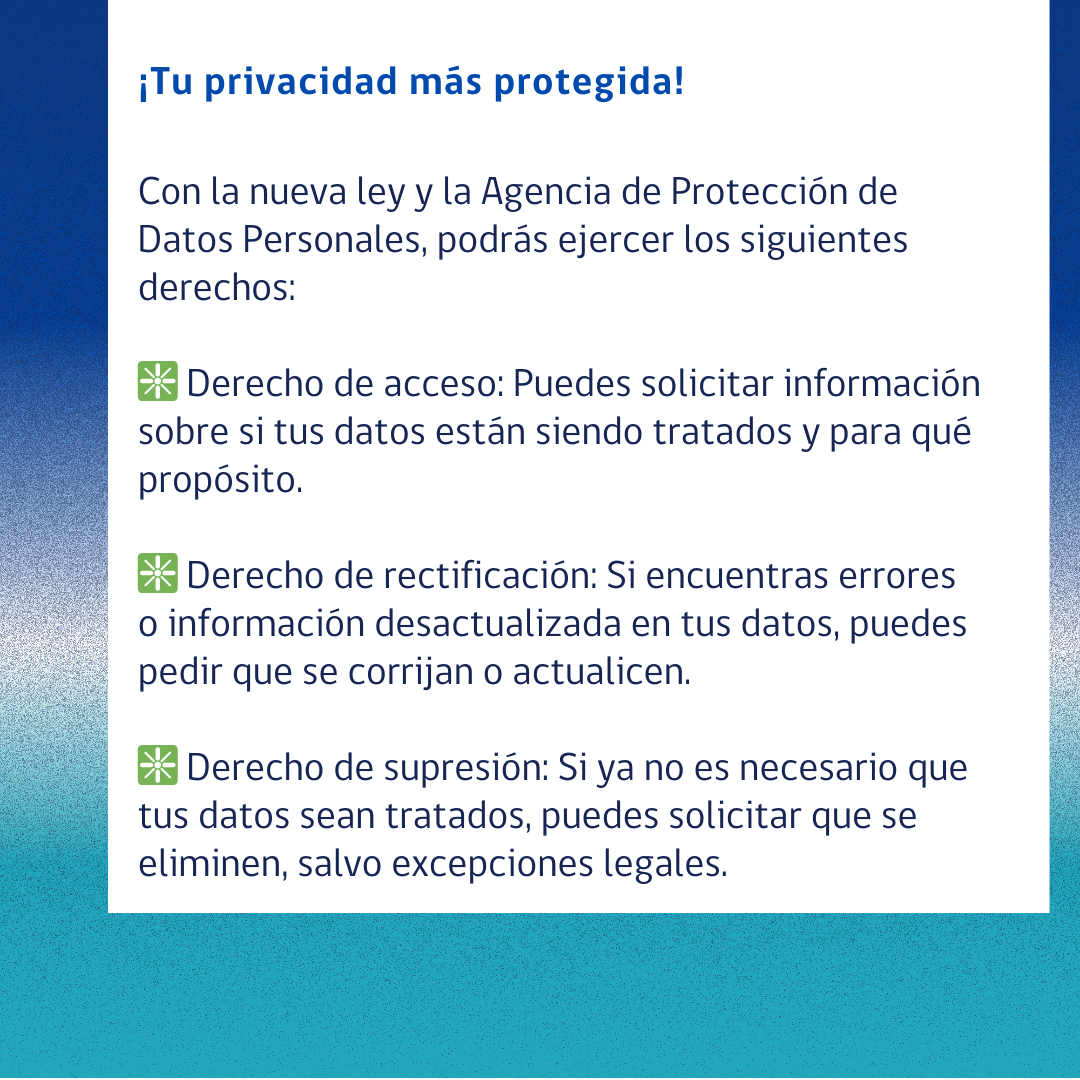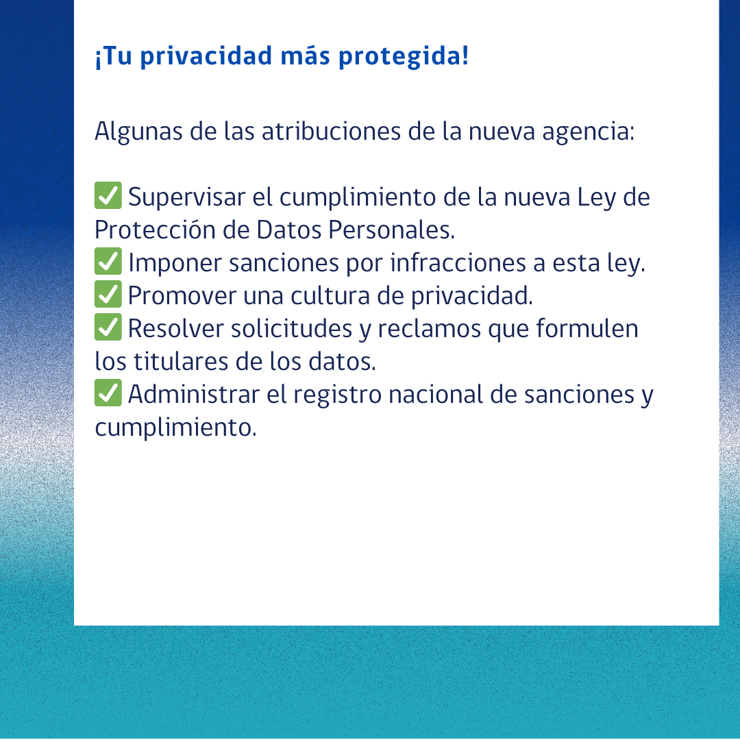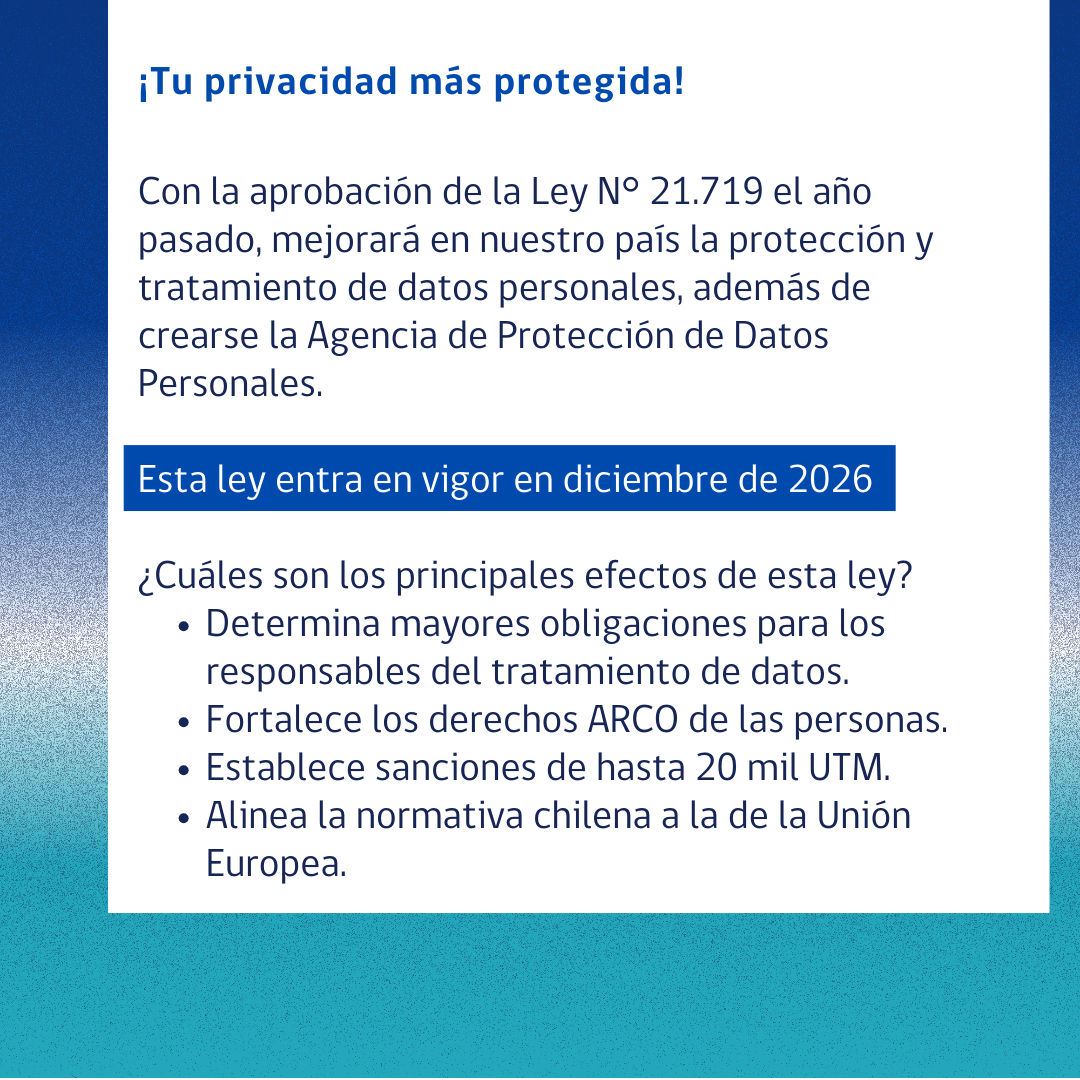 En estas gráficas, la Agencia Nacional de Ciberseguridad (ANCI) resume las principales implicancias y beneficios que traerá la nueva Ley de Protección de Datos Personales, aprobada en 2024 y que entrará en vigor en totalidad a fines de 2026.