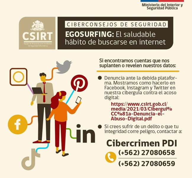 Puede quizás sonar egocéntrico. Pero buscar qué información existe de nosotros en internet no solo es positivo, es hasta necesario, ya que nos permite descubrir si se ha revelado datos confidenciales sin nuestro consentimiento o si existen cuentas que nos suplanten, y de ser así, realizar las gestiones correspondientes para que dejen de estar disponibles en línea.