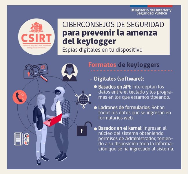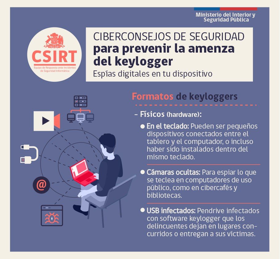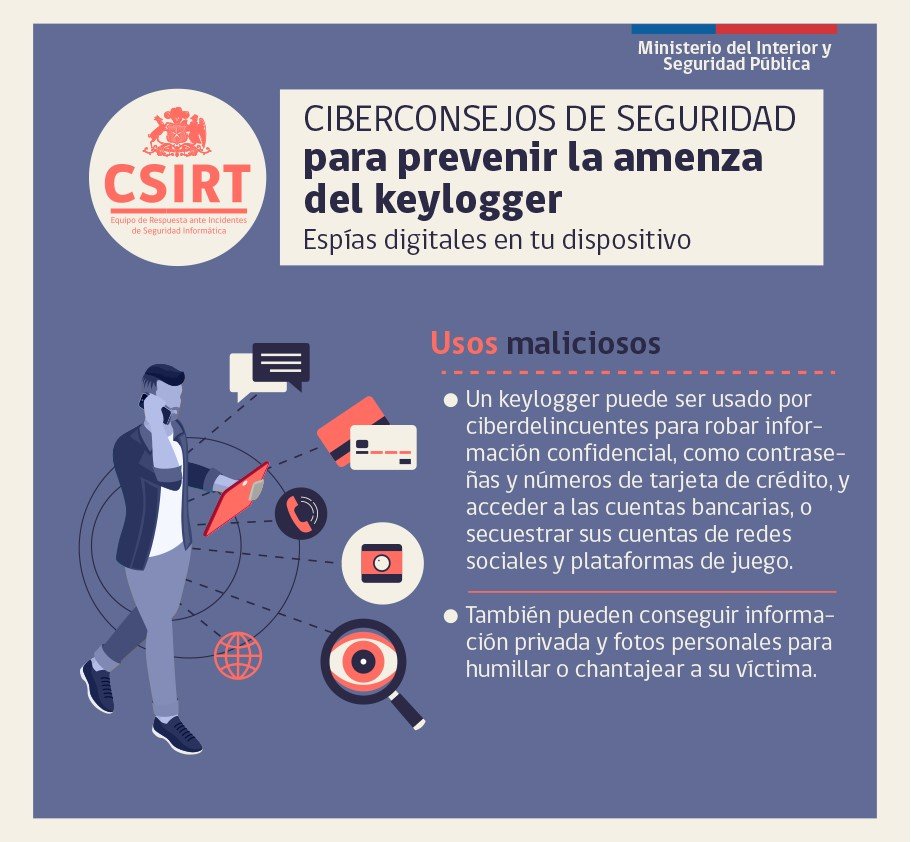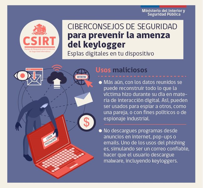 Los keyloggers son programas o aparatos que registran todo lo que un usuario teclea en su computador o celular. Programas más avanzados pueden registrar lo que copiamos en el portapapeles, llamadas realizadas, datos del GPS o lo grabado por la cámara y el micrófono. Estos programas luego envían la información a los ciberdelincuentes.