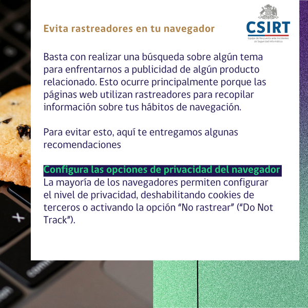 Basta con realizar una búsqueda sobre algún tema para llenarnos de publicidad de algún producto relacionado, esto ocurre principalmente porque las páginas web utilizan rastreadores para recopilar información sobre tus hábitos de navegación. Para evitar esto, aquí te entregamos cuatro #Ciberconsejos para evitar que los rastreadores registren la actividad de tu navegador web.