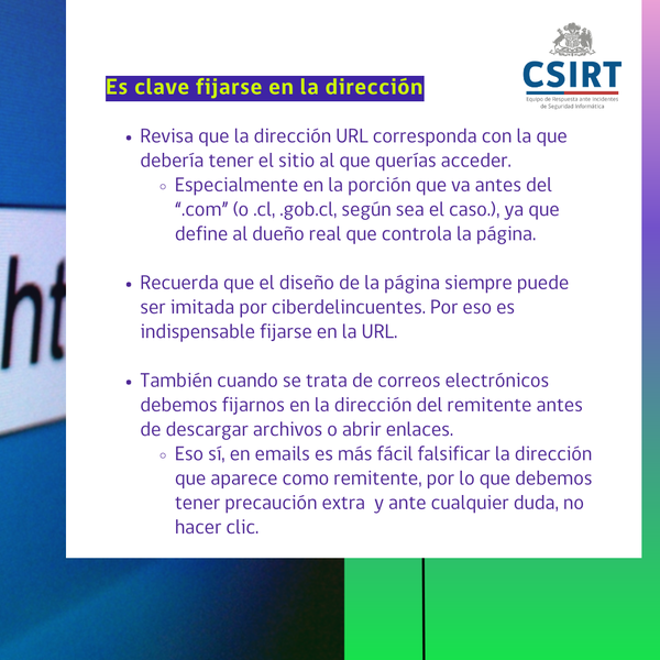 El CSIRT de Gobierno te muestra en qué fijarte para identificar páginas fraudulentas en internet.