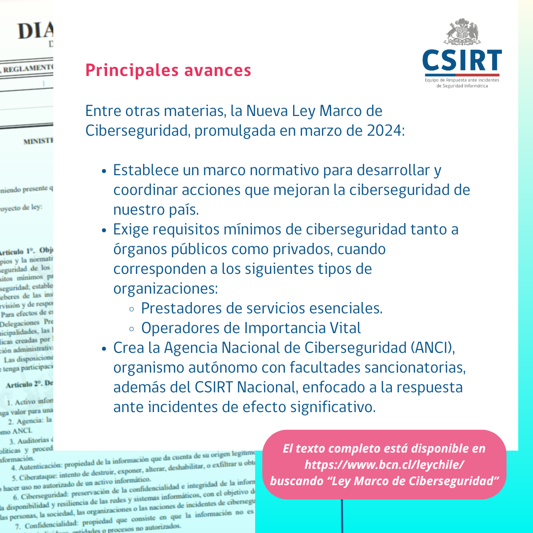 Esta es la primera de una serie de Ciberconsejos en las que compartiremos los principales avances contenidos en la nueva Ley Marco de Ciberseguridad (de la que pueden encontrar el texto completo en el enlace del cuadro azul con el nombre "Enlaces Relacionados").
