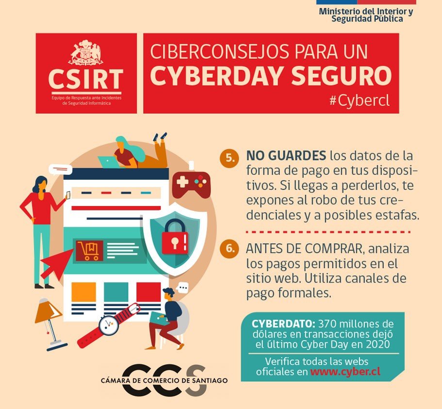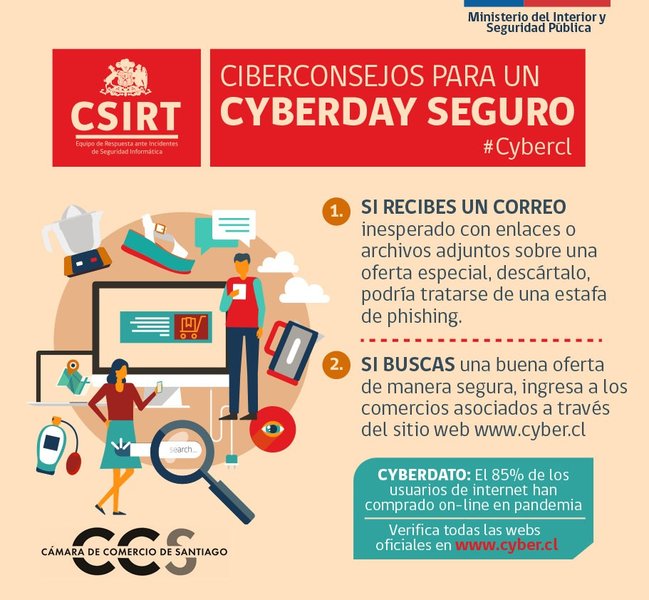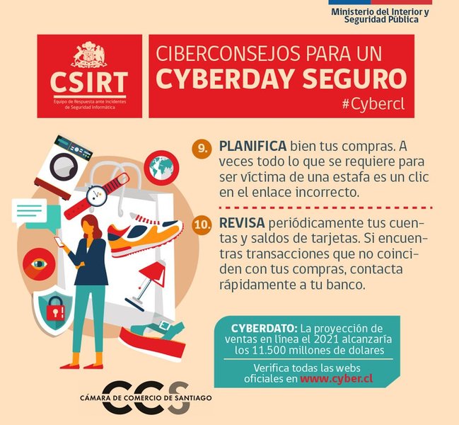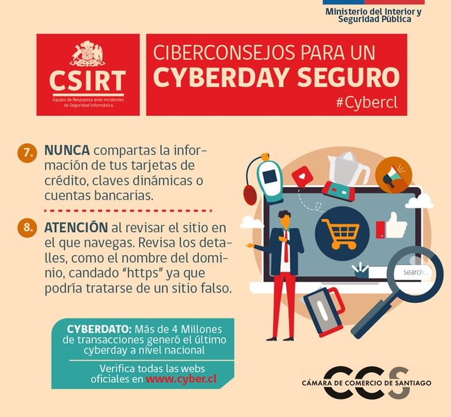 Por esto, y para que si decides comprar lo hagas con seguridad, lo mejor es que sigas las recomendaciones que el CSIRT de Gobierno y la Cámara de Comercio de Santiago preparamos para ti.