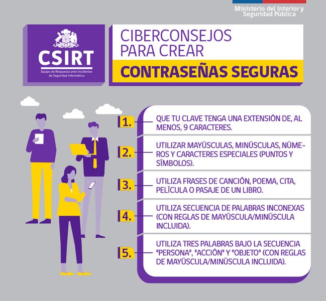 Para cuidar nuestros datos e información en internet es importante contar con contraseñas seguras en los distintos sitios donde te registras, para así evitar, por ejemplo, el robo de tu información o que suplanten tu identidad. El CSIRT comparte contigo algunos ciberconsejos de cómo proteger tus datos y cómo crear una contraseña robusta.