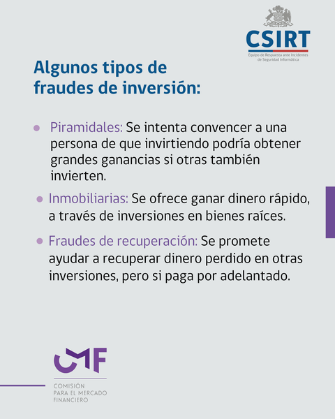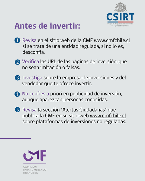 Ciberconsejos para evitar realizar falsas inversiones | CMF y CSIRT