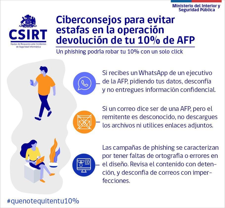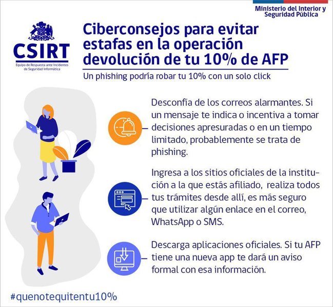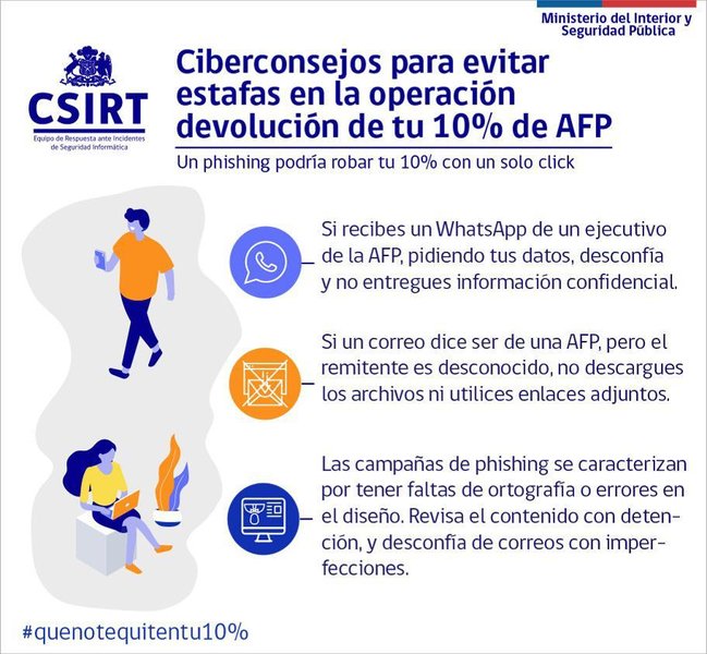 Hoy comienzan las solicitudes ante las AFP para realizar el tercer retiro de ahorros previsionales. Y tal como en los anteriores retiros, la ocasión es un imán para delincuentes que con campañas de phishing a través de falsos emails y mensajes de texto haciéndose pasar por bancos o AFP, buscan robar tus claves personales y tus ahorros.
