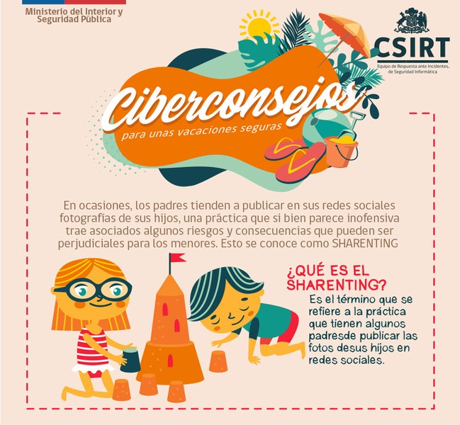 En ocasiones, los padres tienden a publicar en sus redes sociales fotografías de sus hijos, una práctica que si bien parece inofensiva trae asociados algunos riesgos y consecuencias que pueden ser perjudiciales para los menores. Esto se conoce como sharenting y, a continuación, te explicamos en qué consiste y te entregamos algunas recomendaciones para que estas vacaciones sean más ciberseguras.