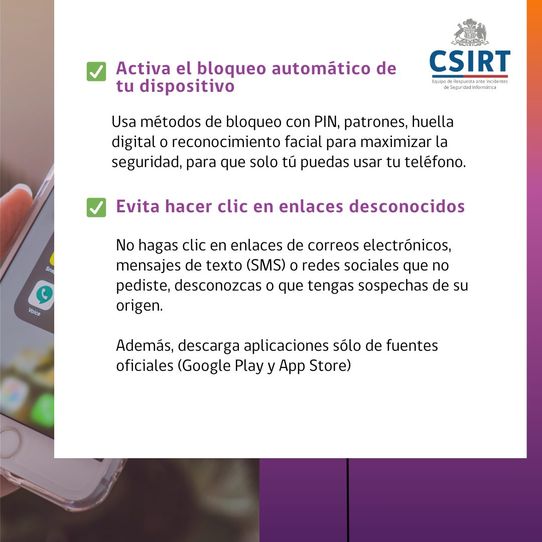 Para esta semana de nuestros tradicionales Ciberconsejos, te compartimos cuatro importantes tips para cuidar mejor la información que manejas en tu teléfono inteligente. Puedes guardar las imágenes y también descargar el archivo PDF disponible en esta página. Compártelo con familiares y amigos.