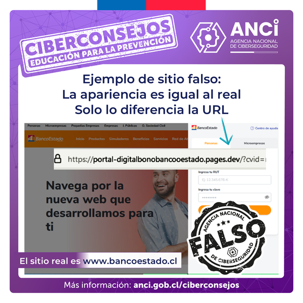 Recuerda que si encuentras sitios que suplantan a otros puedes alertar a la ANCI a través del Reporte Ciudadano, aquí: https://csirt.gob.cl/reportar/.