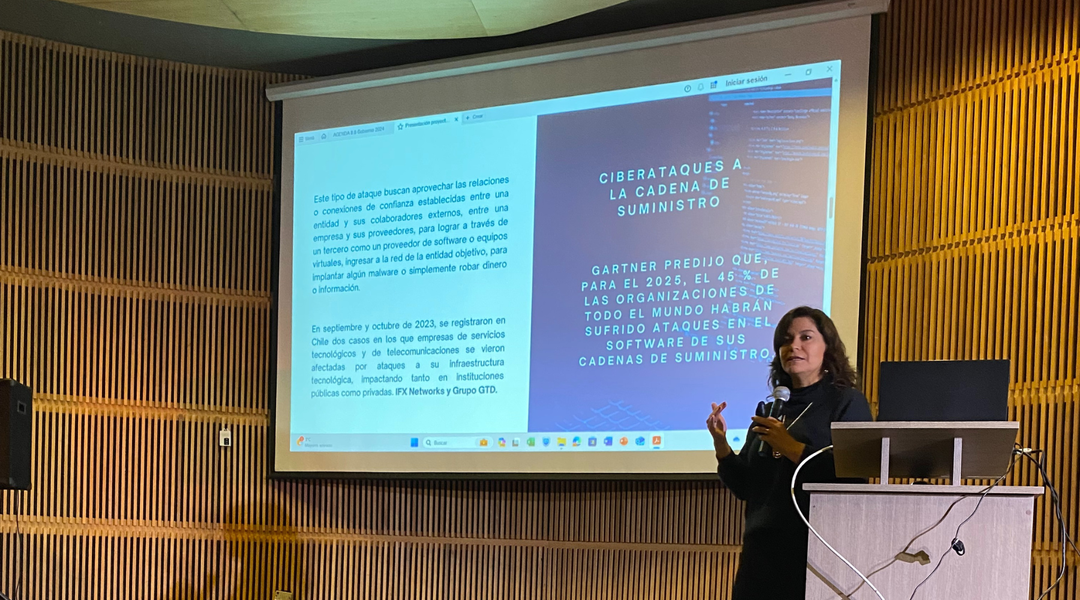 Luego, Karin Quiroga, asesora de la Alianza Chilena de Ciberseguridad, resaltó la importancia del talento para proteger los activos en la era digital, asegurando que la concientización de los equipos profesionales de las empresas y las instituciones de educación es clave para avanzar en estrategias de ciberseguridad activas, capaces de enfrentar desafíos y amenazas.