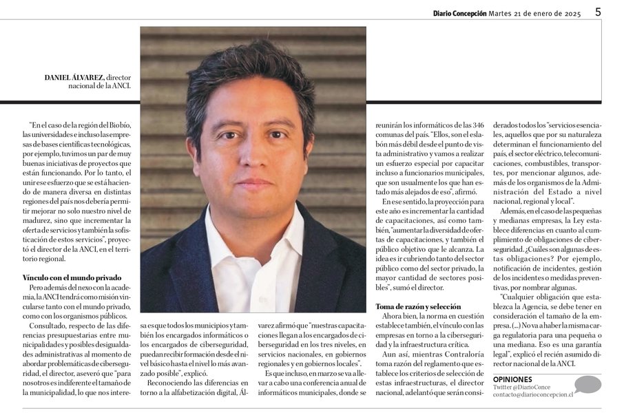 “Nuestra vida depende de servicios digitales. Pedir una hora, comprar, hacer una transacción electrónica, dependemos de tecnologías digitales todo el día, para pedir un auto, para pagar cuentas incluso. Por lo tanto, necesitamos garantizar que esos servicios digitales estén operativos 24/7 a lo largo de todo el país. Cuando tenemos una emergencia de ciberseguridad, al final, los afectados son los ciudadanos que no pueden llevar a cabo su vida de manera normal”, explicó el director Nacional de la ANCI, Daniel Álvarez Valenzuela, quien es abogado y doctor en Derecho por la Universidad de Chile.