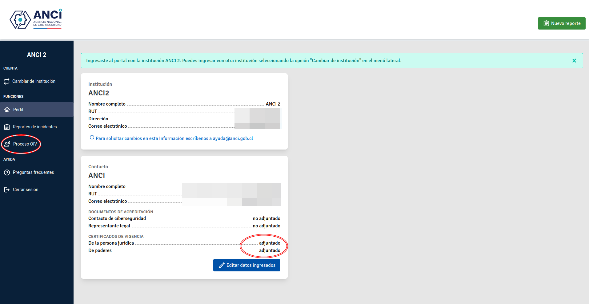 Si al intentar ingresar te aparece el error “No tienes acceso a esta función en nombre de su institución”, debes ingresar a “Editar datos ingresados” en el Portal ANCI y adjuntar los documentos solicitados: certificado de vigencia de la persona jurídica y certificado de vigencia de poderes. Ambos certificados no pueden tener una fecha de emisión superior a 90 días. Las observaciones realizadas sin cumplir estos requisitos serán declaradas inadmisibles.