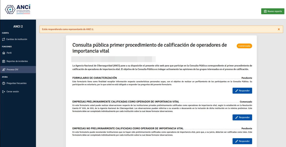 Para ser parte del proceso de consulta pública que se inició este 16 de septiembre de 2025, con motivo de la publicación por parte de la Agencia Nacional de Ciberseguridad (ANCI) del primer listado preliminar de Operadores de Importancia Vital, sólo debes ingresar al Portal ANCI y completar un sencillo formulario.