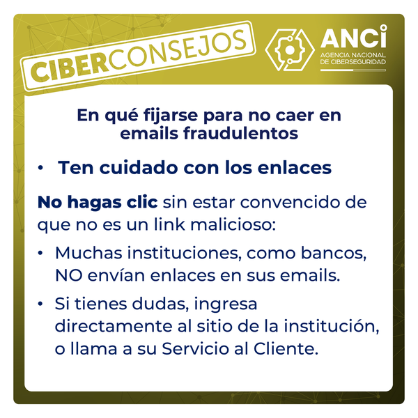 En la Agencia Nacional de Ciberseguridad (ANCI) queremos que estés preparado para reconocer uno de estos mensajes maliciosos y no hagas clic, ni descargues malware.