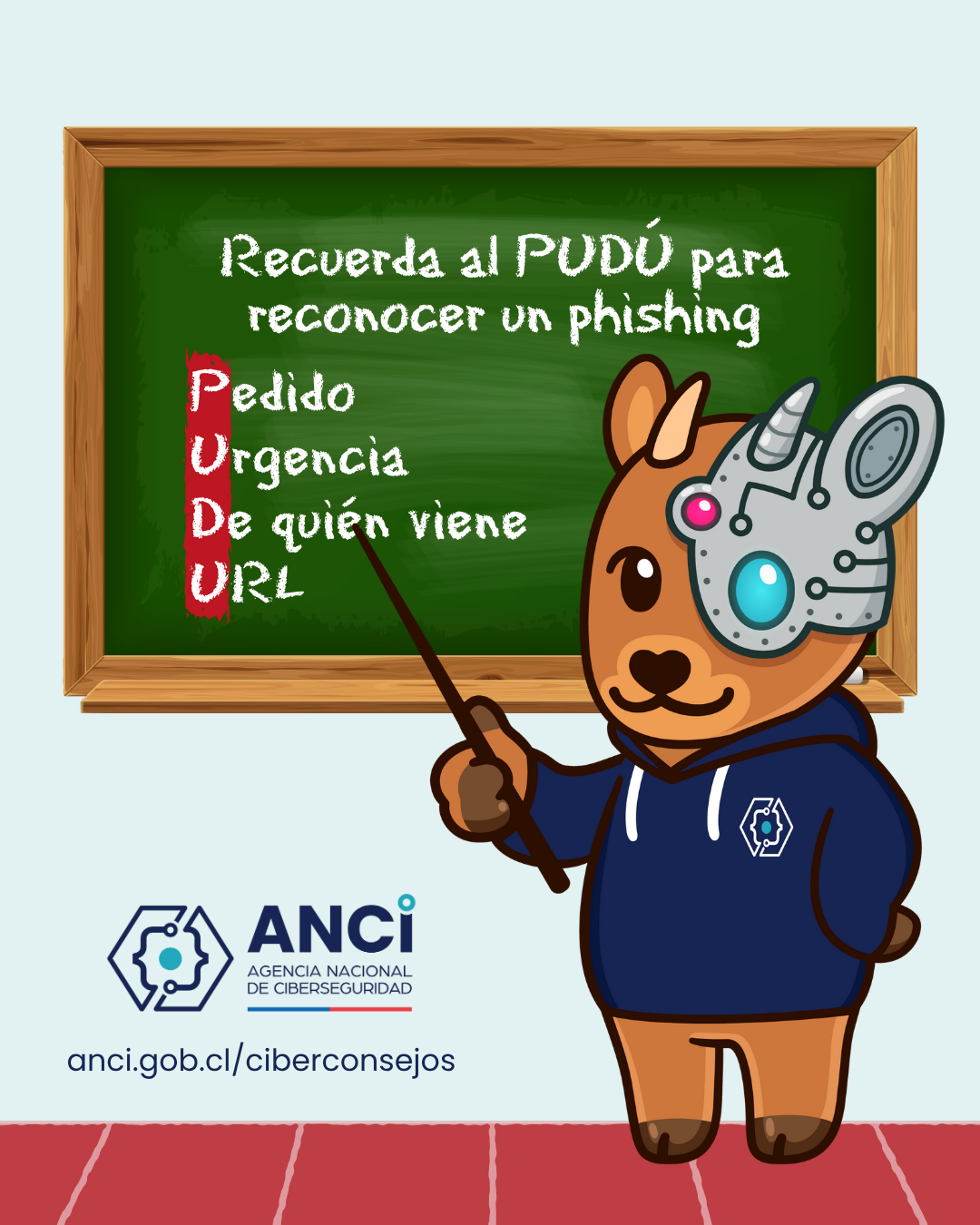 Por eso resumimos las claves de un phishing en cuatro conceptos que forman la palabra PUDÚ, en honor a nuestro querido Ciberpudú.